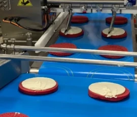 - Dvoupruhové nanášení náplní dortů pro výrobu kulatých dortů